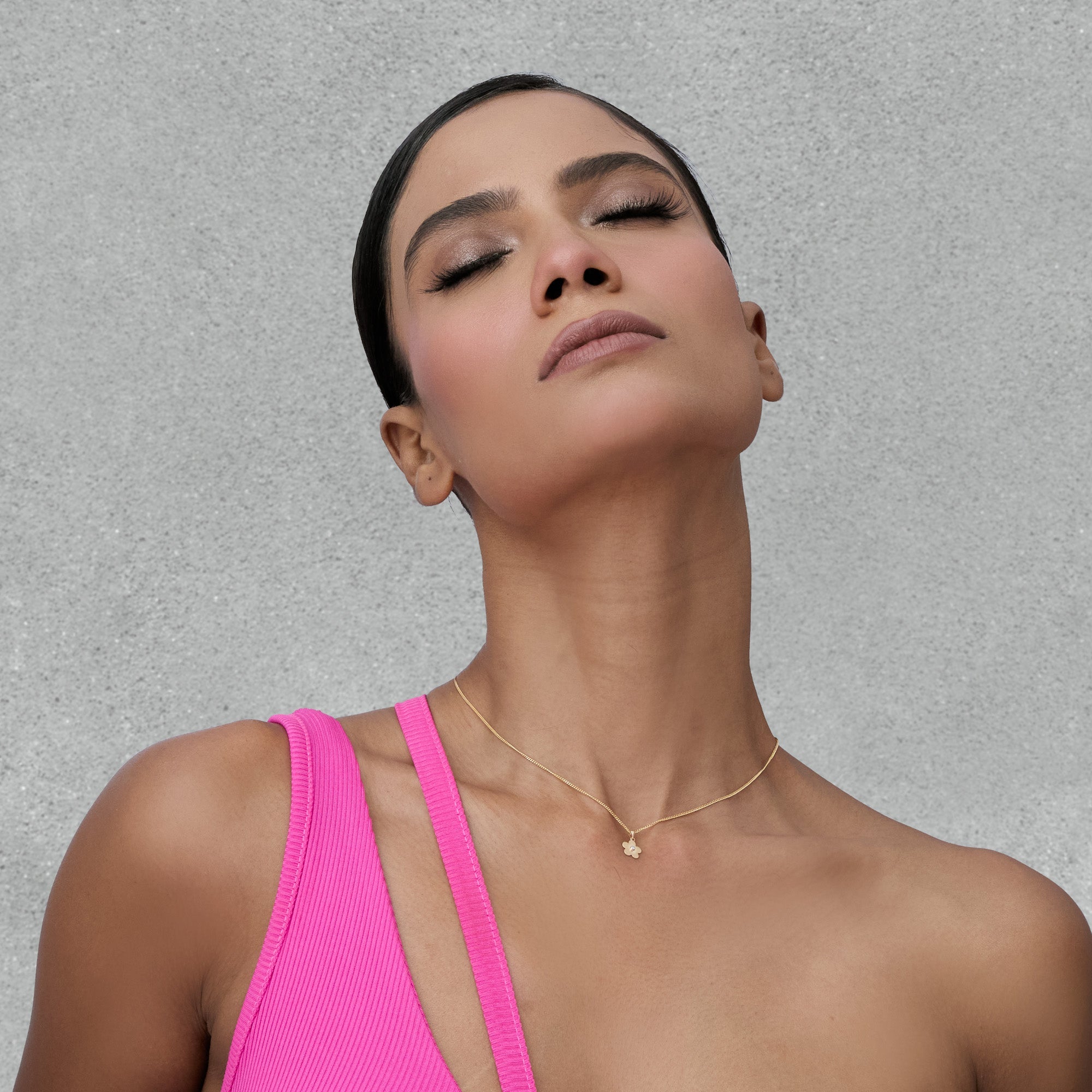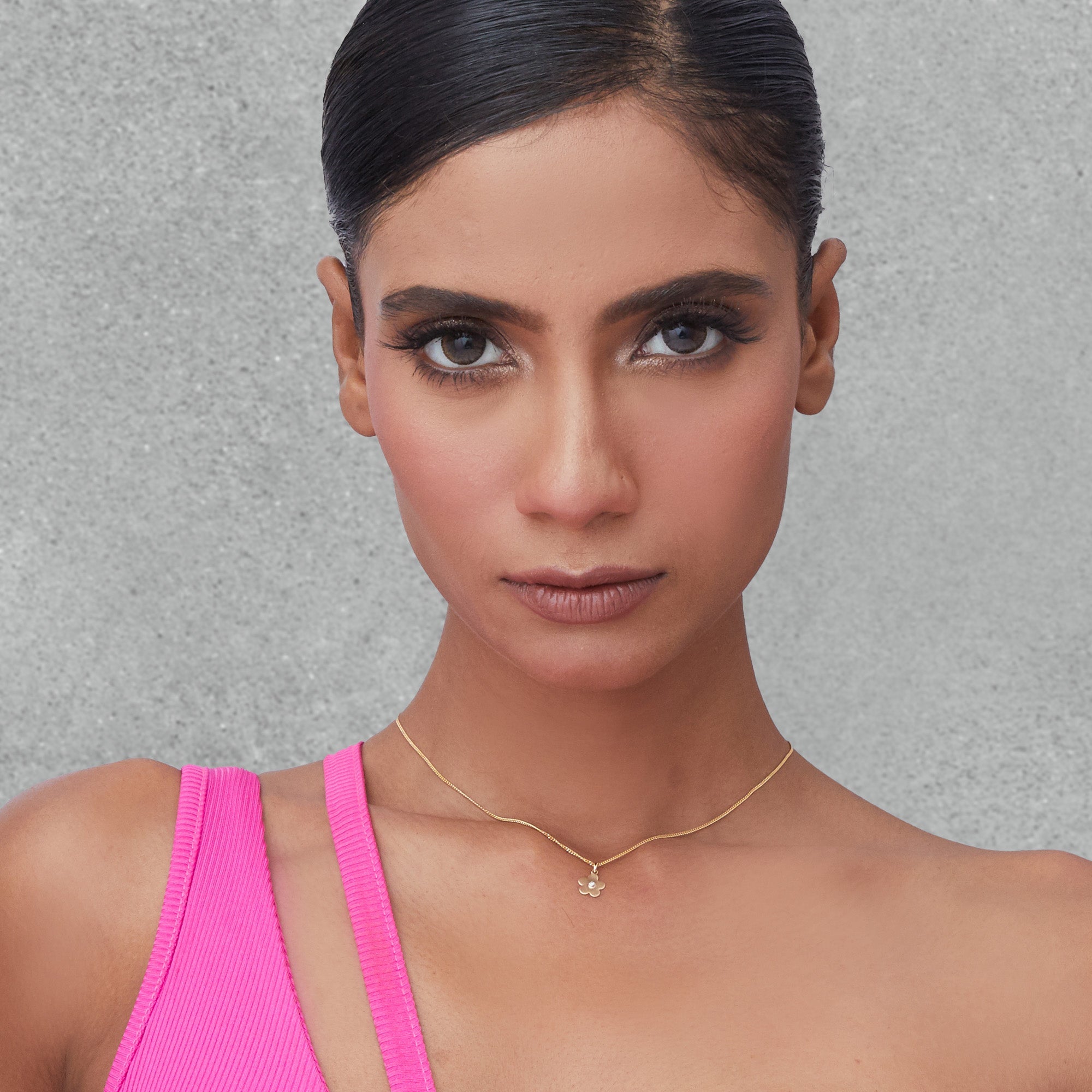 A sweet floral gold pendant accented with a single sparkling diamond, blending feminine charm and minimal elegance for effortless everyday wear.