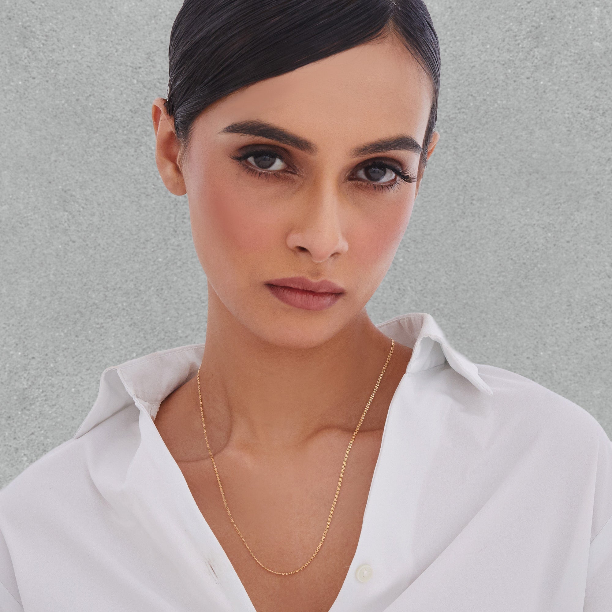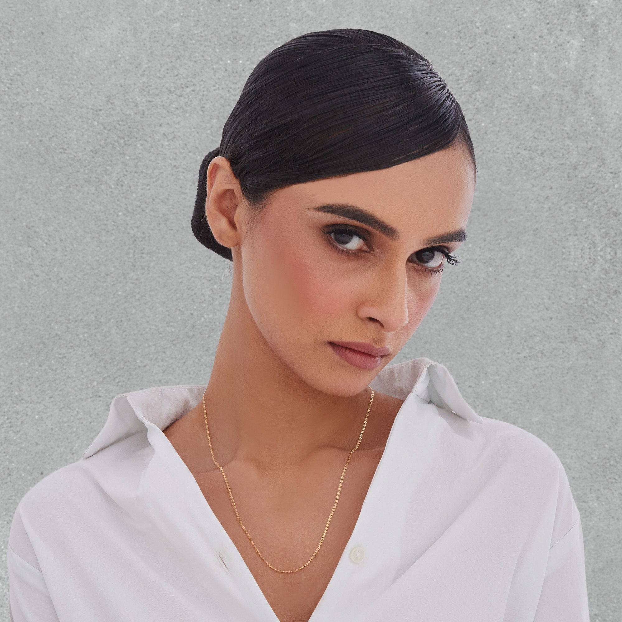 Lightweight 18k gold mesh chains layered with subtle shine — perfect for women who love refined minimalist jewellery that feels effortless and elegant every day.