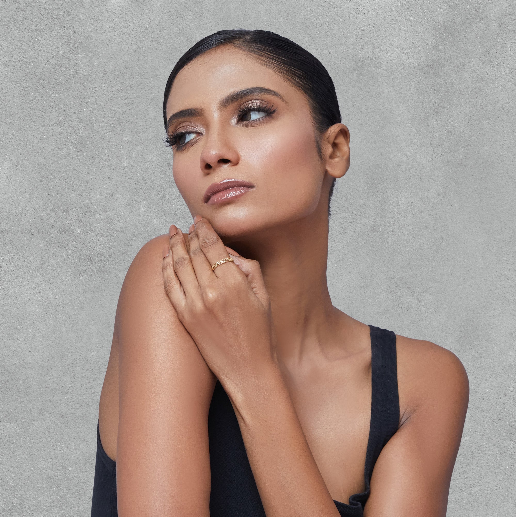 Delicate cutout petals create a modern, feminine silhouette in this 18k gold minimalist ring — a lightweight everyday piece for women who love subtle artistry and timeless style.
