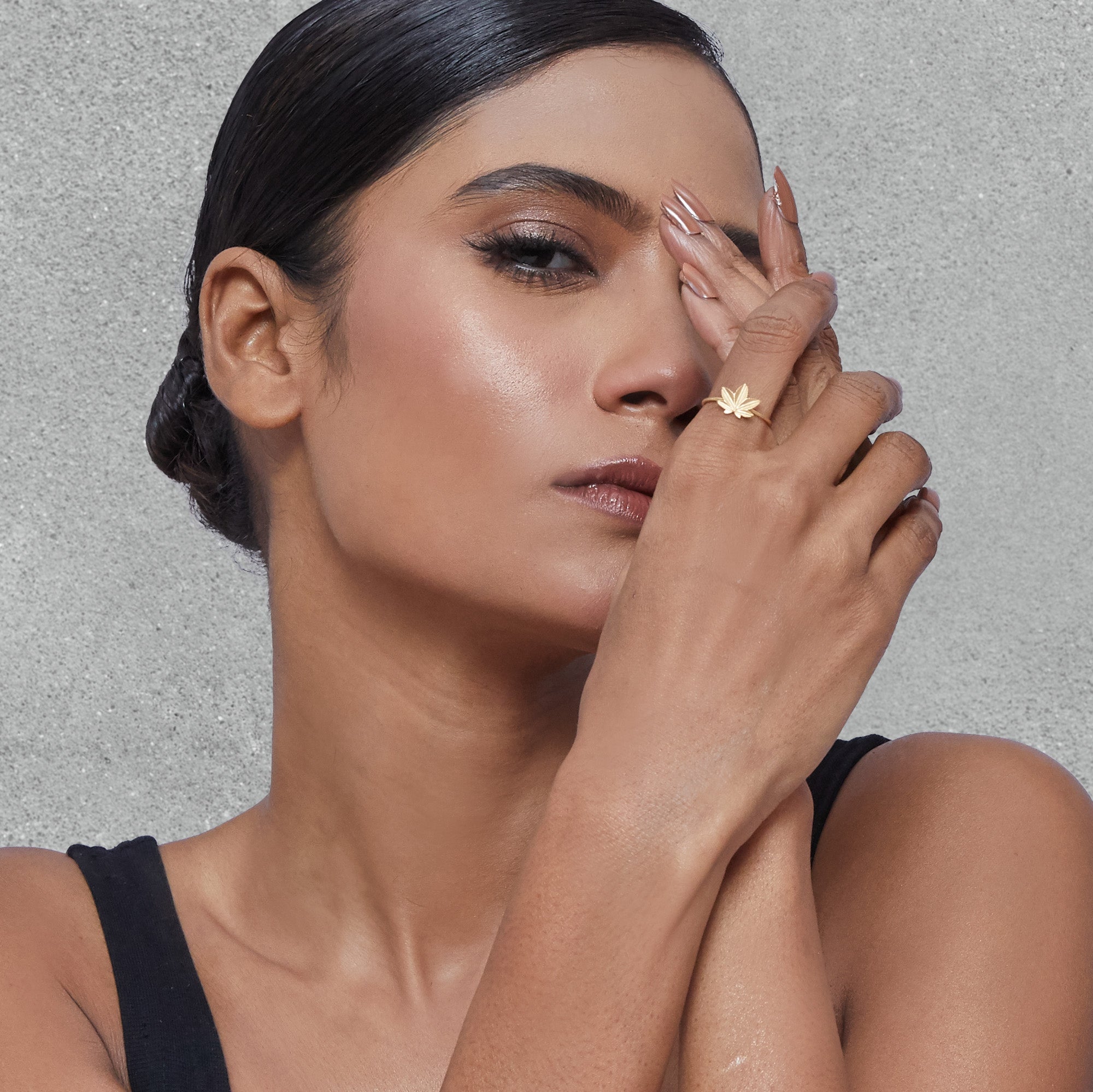 Shaped in 18k gold, this leaf-motif ring captures nature’s raw elegance. Sleek and unconventional, it’s crafted for women who move with their own rhythm — grounded, bold, and beautifully untamed.