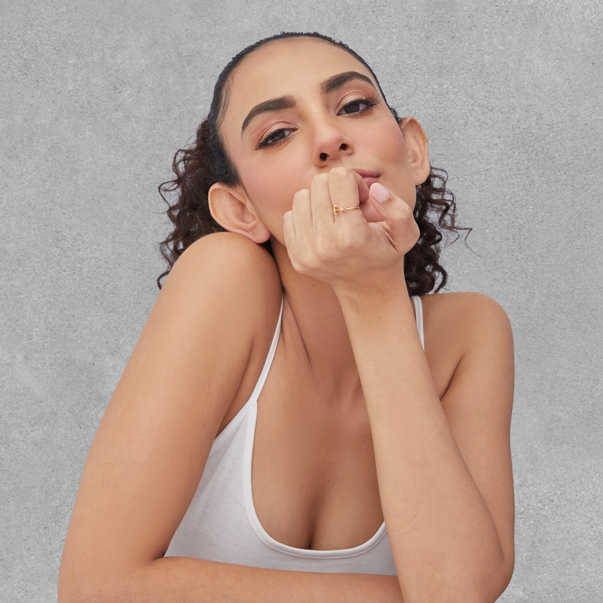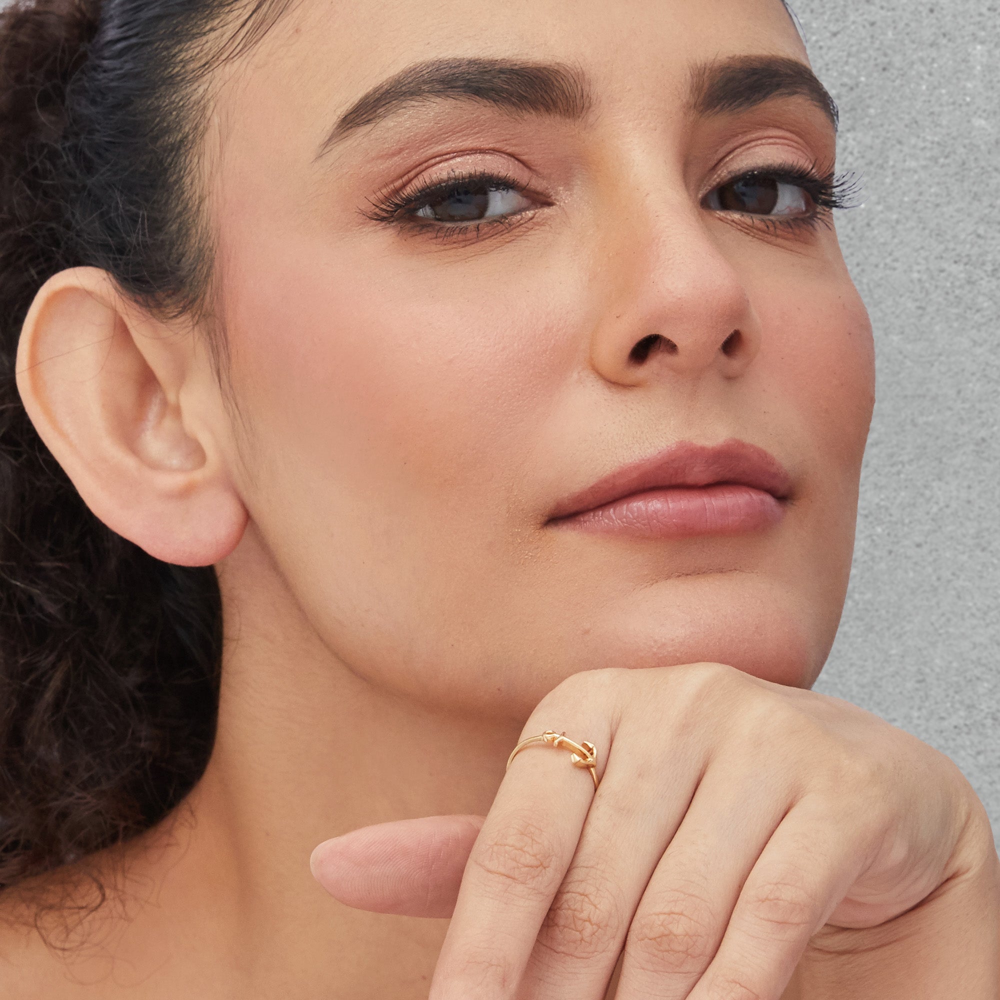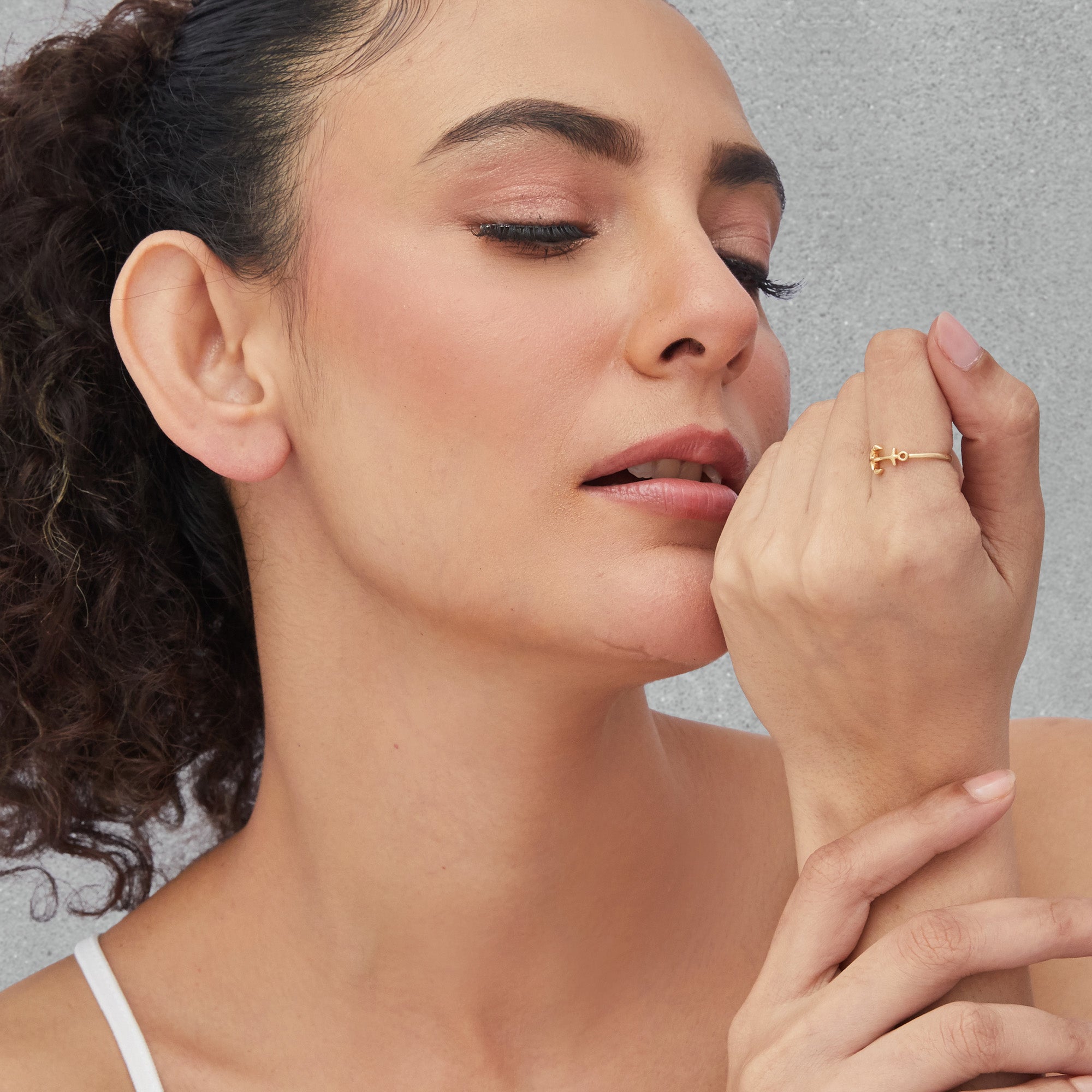 Anchored in elegance, this 18k gold ring reimagines strength through a refined, modern silhouette. Its sculpted form and subtle sparkle capture the essence of control, courage, and unmistakable feminine poise.