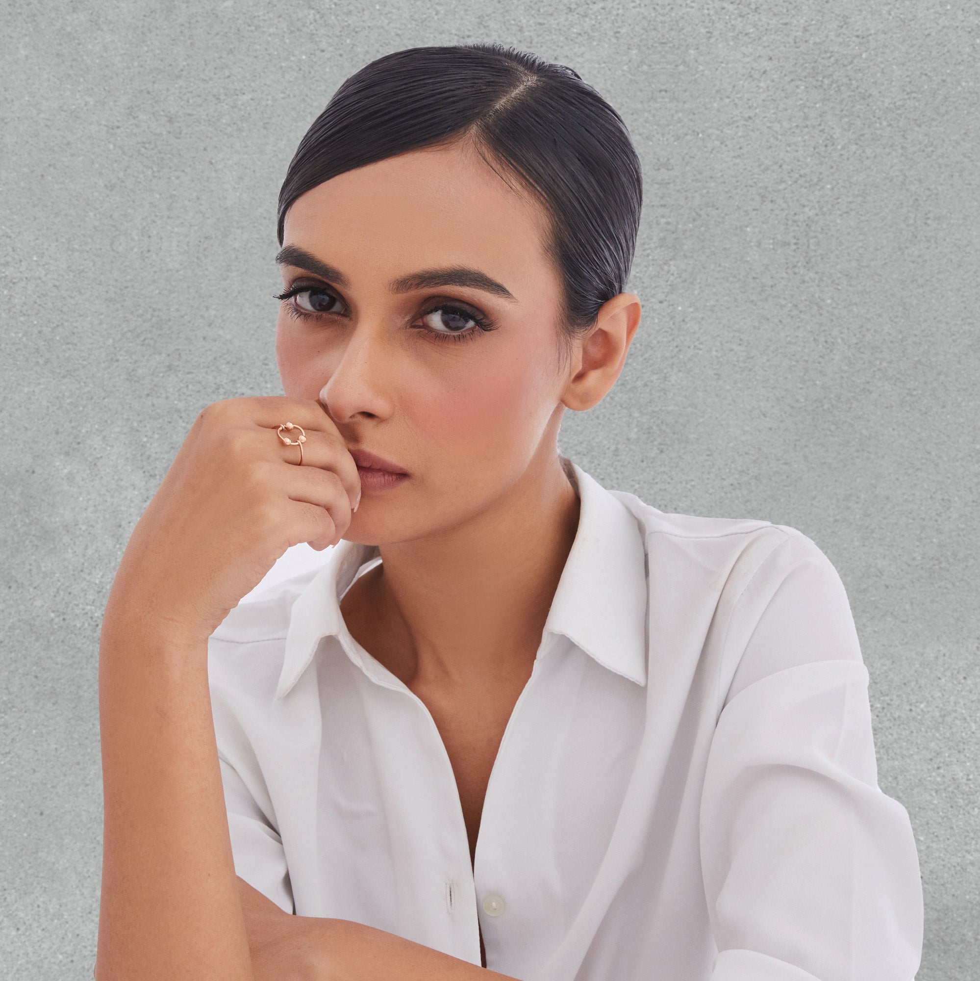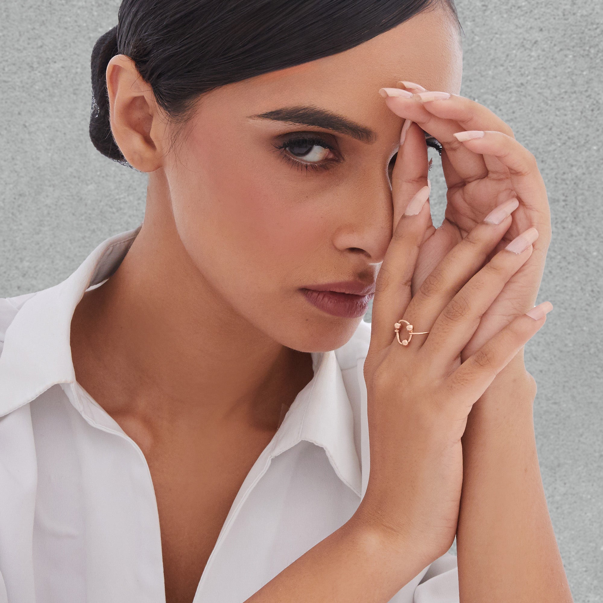 Designed in 18k gold, this open-frame ring plays with structure and symmetry through three sculpted spheres. Sleek, contemporary, and undeniably chic — simplicity transformed into confidence.