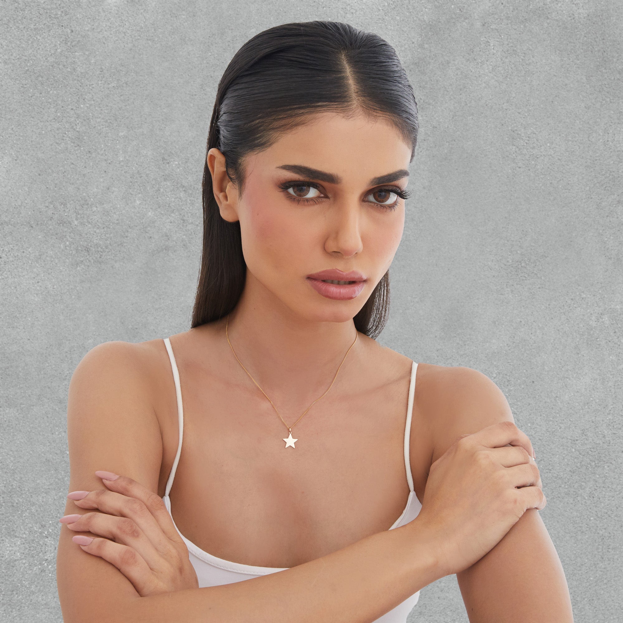 A sleek, feminine star pendant crafted in luminous gold, bringing celestial charm and everyday elegance to your style with its minimalist, modern shine.