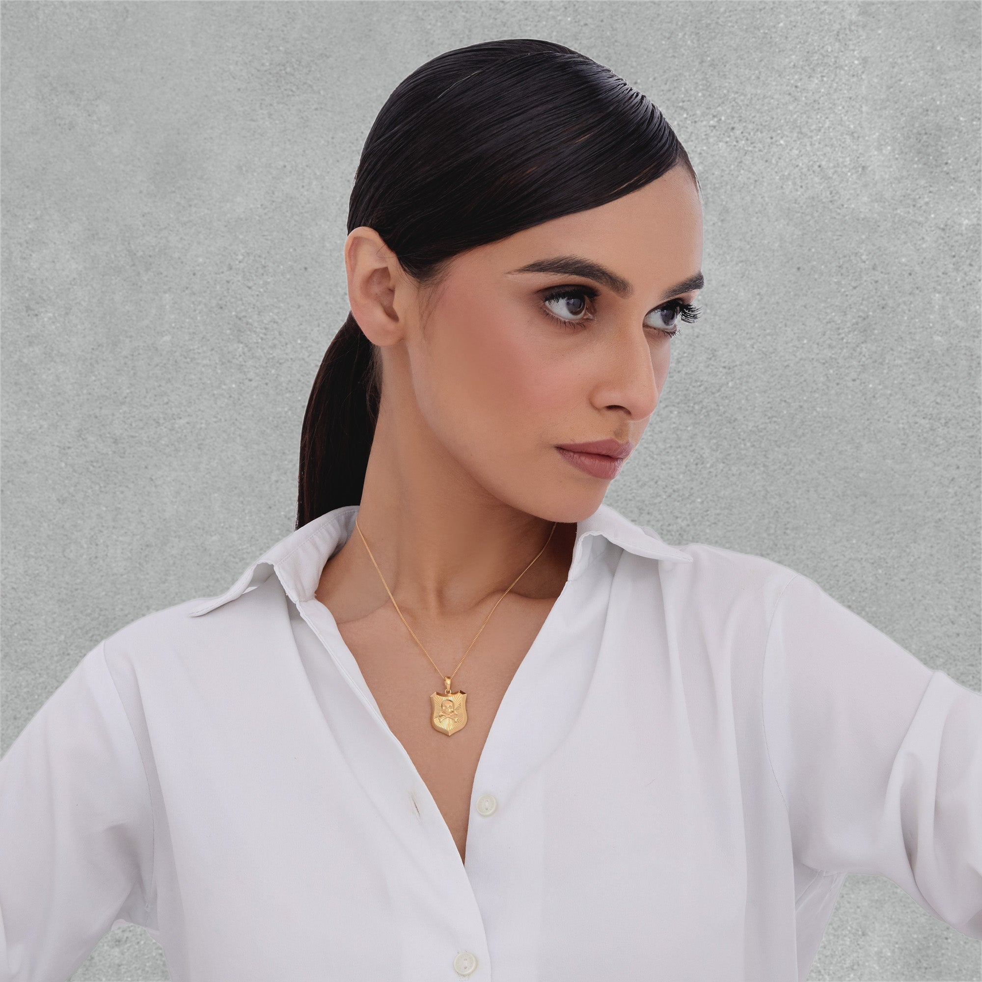 An 18k gold shield crowned with a sculpted skull, created for women who embrace fierce elegance and carry their power with unmistakable style.